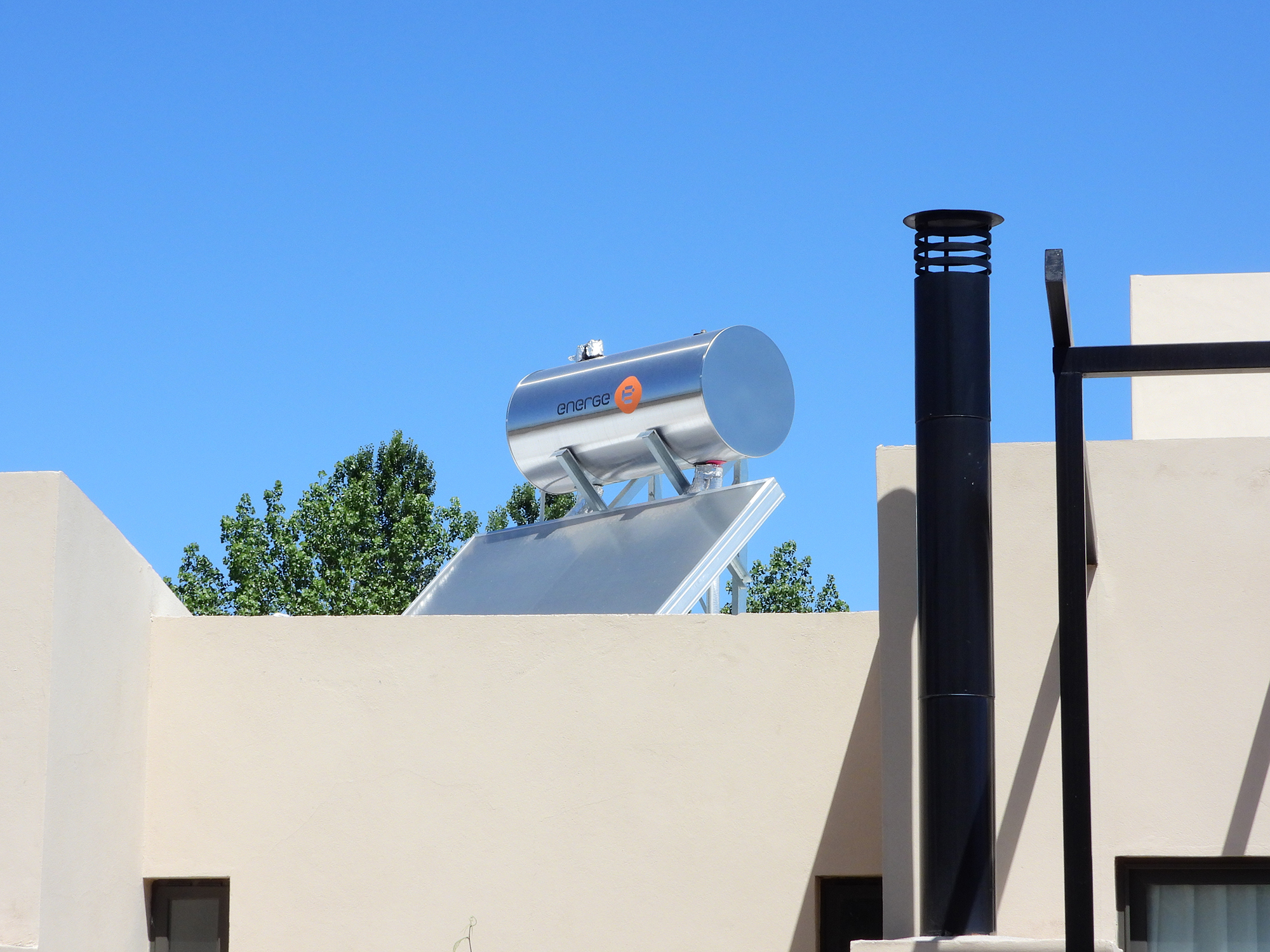 Usamos la energía solar para calentar el agua y para iluminar el exterior